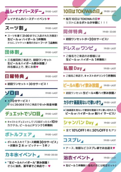 本指名様はもとより、大勢様のご来店お待ち致しております。